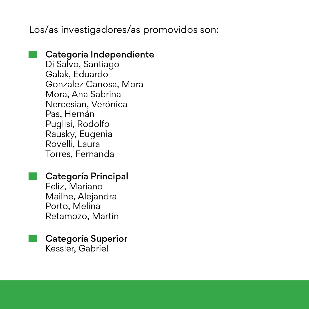El Directorio del CONICET, en su reunión del 13 de marzo de 2024 resolvió establecer la nómina de agentes a ser promovidas/os de clase en la Carrera del Investigador, 15 de ella/os desempeñan tareas en nuestra Unidad Ejecutora.