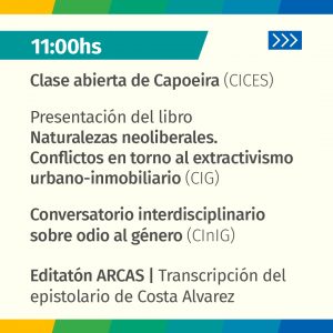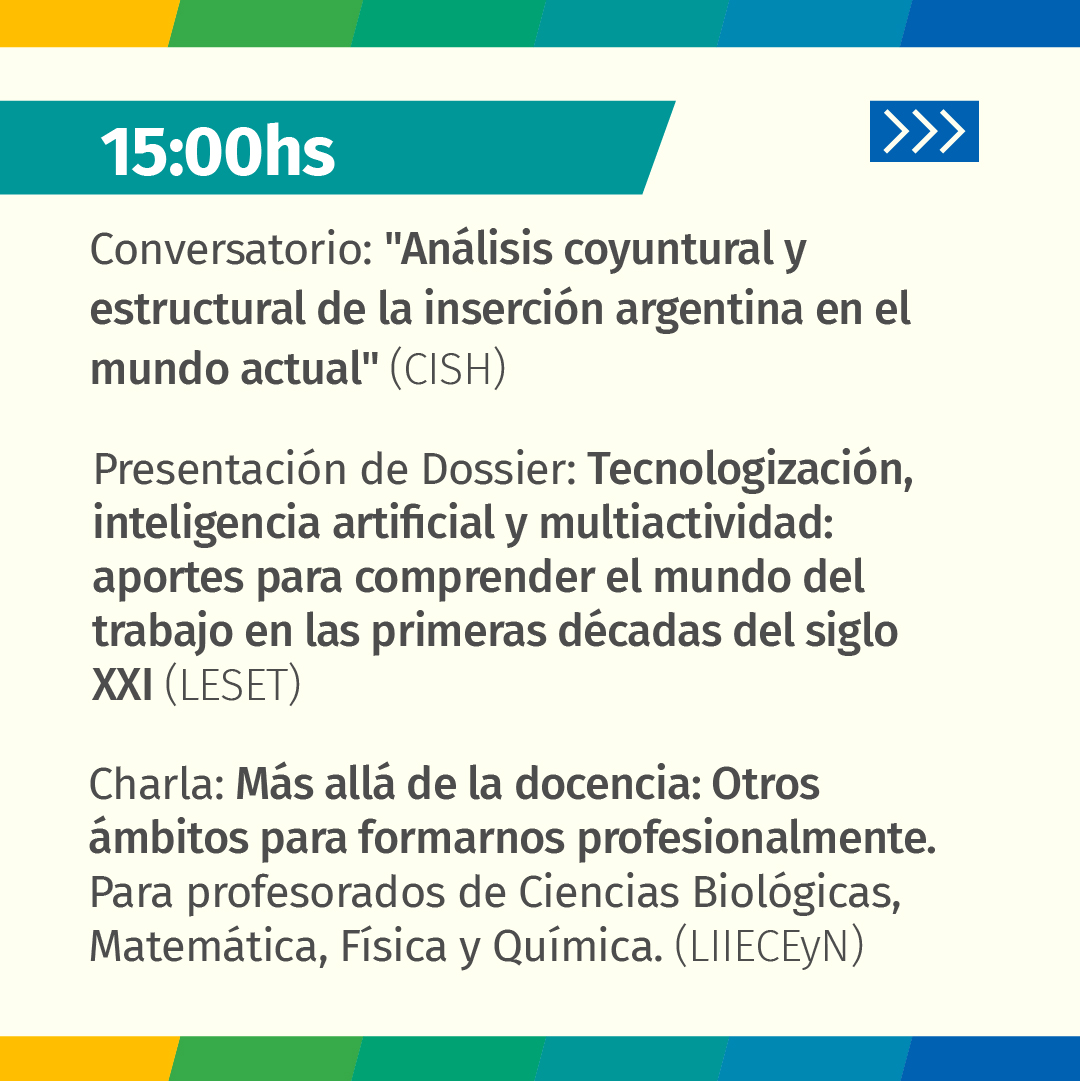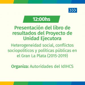 En simultáneo se realizaron conversatorios sobre Género, Historia Reciente, Extractivismo, Música Helénica e Investigación en Letras entre otras. Se presentó la muestra “Educación y Dictadura” sobre documentos de la DIPBA y a mediodía tuvo lugar la presentación del libro “Heterogeneidad social, conflictos sociopolíticos y políticas públicas en el Gran La Plata (2015-2019)”, que reúne los resultados del Proyecto de Unidad Ejecutora (PUE) del instituto, y que estuvo a cargo de Gloria Chicote, ex directora del CONICET La Plata y del IdIHCS, y su vice en esta última gestión, el investigador Antonio Camou.